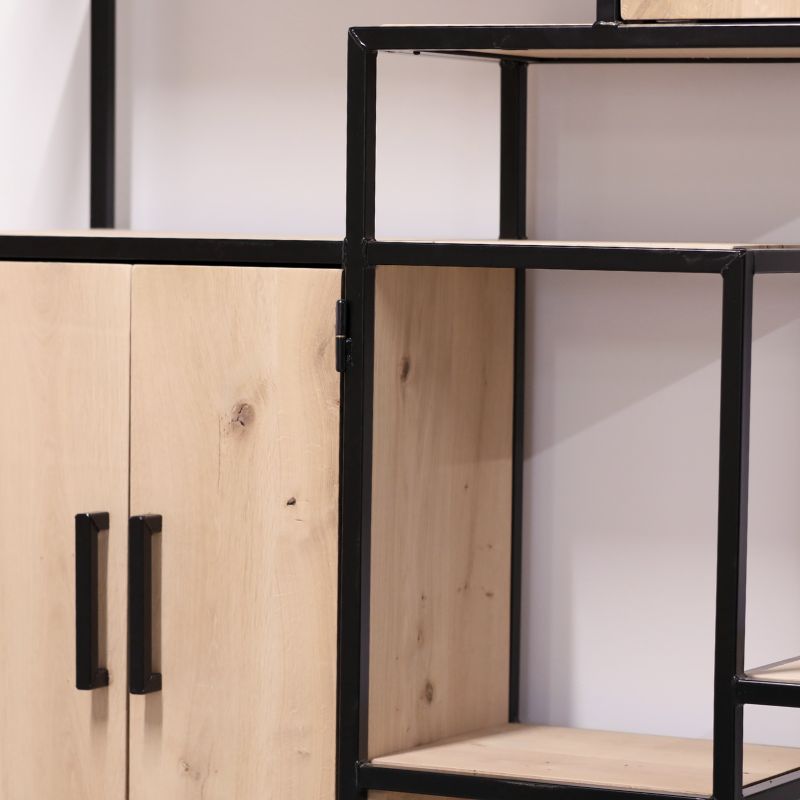 Vakkenkast eikenhout en staal 9 op de foto
