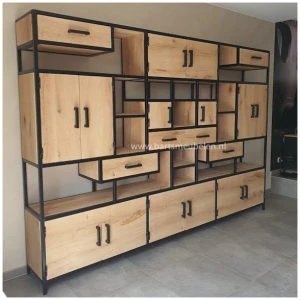 Staal en metaal worden in hoofdzaak vaak gebruikt voor het frame van de wandkasten. Maar ook voor andere details zoals de handgrepen, om het geheel nog stoerder te maken. De deuren van de wandkasten kunnen zowel van hout of metaal zijn.