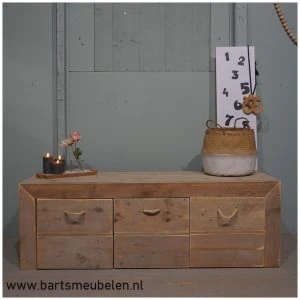 Steigerhouten opbergbank 1 is een sfeervolle bank met opbergbakken op vilt of wieltjes voor in jouw woning. Hieronder stel je deze bank met opbergruimte naar jouw eigen afmetingen en wensen samen.