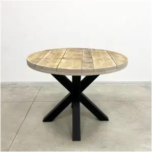ยป Rond tafelblad van steigerhout ยป Extra dik door 2-laags blad. ยป Met stalen matrix-onderstel incl. poedercoating