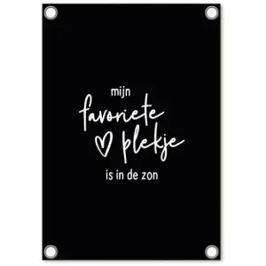 Zwarte tuinposter ”mijn favoriete plekje is hier met jullie” is weerbestendig en eenvoudig te bevestigen. Voor een warme sfeer in je tuin of op je balkon.