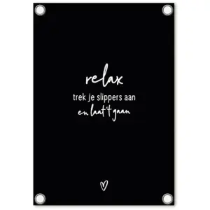 Deze stoere tuinposter heeft een witte kleur welke makkelijk past in iedere tuin. Hierop staat de zwarte tekst Just Relax, wat natuurlijk voor zich spreekt.