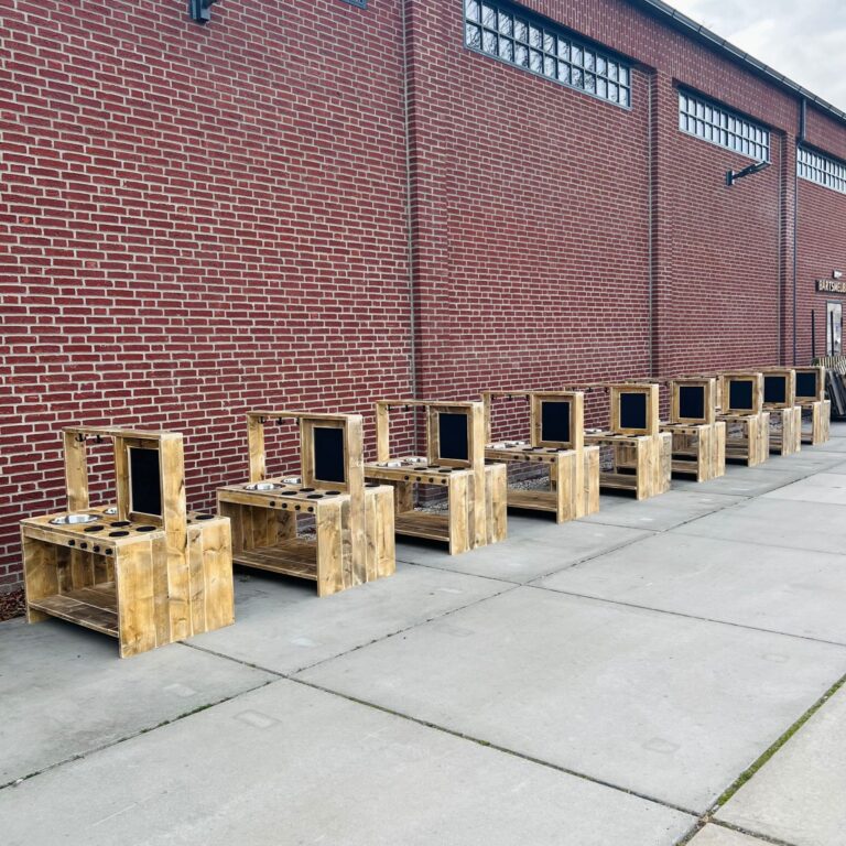 Voor een kinderdagverblijf mochten we 9 stoere modderkeukentjes maken van old look steigerhout. Van het zagen en verven tot de details zoals kookplaatjes, krijtbordjes en een echte wasbak alles kwam voorbij. In deze blog en video neem ik je mee van begin tot eind en natuurlijk het eindresultaat!