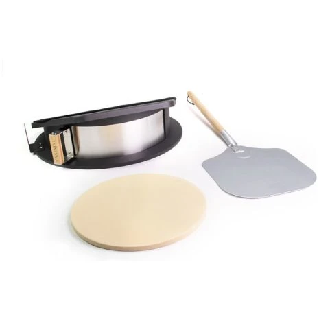 Met dit pakket heb je alles in huis om pizza’s te bakken. Het pakket bevat een pizzasteen, pizzaschep en pizzamond. De keramische pizzassteen verdeelt gelijkmatig de warmte en houdt overtollig vocht vast, zodat je altijd een krokante pizzabodem hebt. De pizzaschep gebruik je om je pizza eenvoudig in en uit de Kamado te halen. Door het gebruik van een pizzamond verlies je geen temperatuur tijdens het bakken van meerdere pizza’s. Je haalt ze door de schuif snel in en uit de Kamado. Ook verminder je de kans op een backdraft, dit maakt het gebruik van een pizzamond enorm veilig.