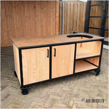 Een kamado kun je nooit direct op het hout plaatsen. Vrijwel ieder merk kent zijn eigen tafelnest. Maar wij hebben ook een universeel bbq tafelnest om de kamado in onze buitenkeukens te kunnen plaatsen.