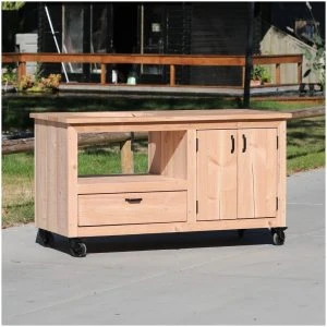Ontdek de kamado compact tafel douglas 150×70 op wielen van Barts Meubelen. Deze kamado-tafel van hout heeft een antracietgrijze keramische tegel op het blad van 70x70cm, welke je gemakkelijk kunt afnemen met een doekje. Bovendien bieden onze buitenkeukens veel opbergruimte en is dit model geschikt voor de compact kamado.