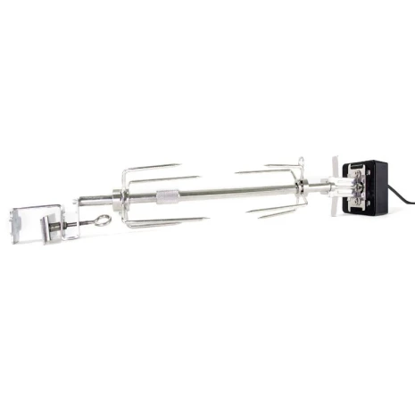Grill Guru Rotisserie. Met dit draaibare spit voor jouw Grill Guru Kamado bereidt je de lekkerste recepten. Deze universele rotisserie heeft een sterke motor en stevige pinnen om je vlees, kip of groente goed vast te zetten. Voor het gebruik van de rotisserie heb je een stopcontact nodig.