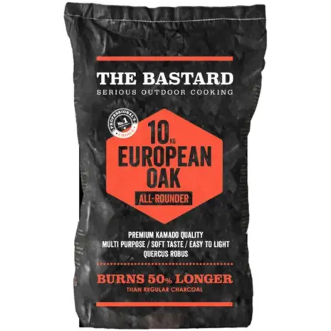 The Bastard European Oak houtskool 10 kg van Europees eikenhout. Lange brandduur, stabiele temperatuur en ideaal voor kamado BBQ.