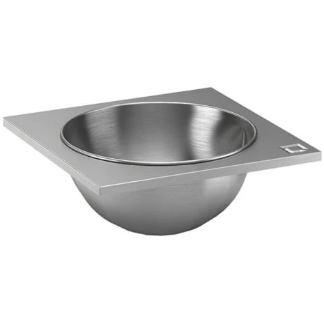 De Ice inox rvs past in de adapter van het oneq inbouwsysteem. Deze uitvoering heeft een RVS plaat om de kom heen.