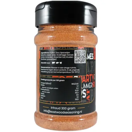 Eastwood Seasoning All Purpose BBQ Rub is een kruidige BBQ rub met gerookte paprika, anijs, venkel en jeneverbes. Voor vlees en groente. 300 gram.
