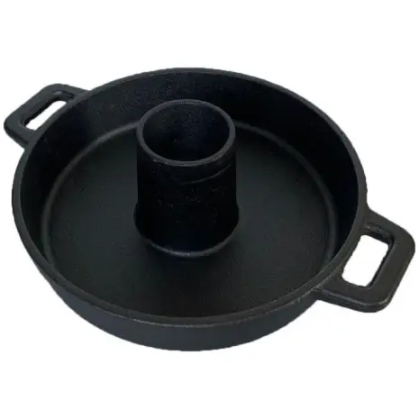 Kiphouder van gietijzer voor de BBQ of kamado. Gaar een hele kip staand en bereid groente of aardappels tegelijk in de schaal eromheen.