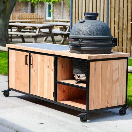 Deze populaire combinatie: Douglas Buitenkeuken Gorinchem van maar liefst 205cm lang met hierin de Urban Bastard Large Kamado is een aanwinst voor jouw tuin. Door de handige zwenkwielen ben je super flexibel en achter de kastdeurtjes vindt je praktische opbergruimte.