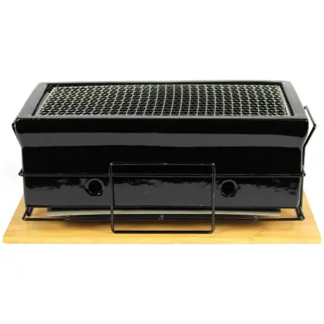 Met een breedte van 43 cm en diepte van 23 cm is deze Shichirin geschikt voor 2 tot 6 personen. De rechthoekige vorm biedt ruimte voor meerdere spiezen, groentegerechten of vis. De grill is licht genoeg (13 kg) om eenvoudig mee te nemen naar de tuin, het balkon of zelfs op vakantie.