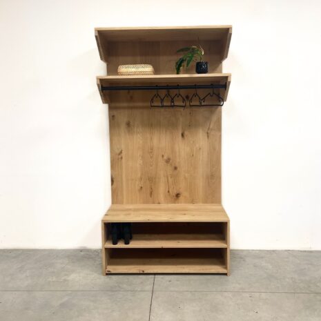 Deze garderobekast wordt gemaakt van massief, rustiek eikenhout. Dit geeft de garderobekasten een sfeervolle, luxe uitstraling. Bovendien combineert eikenhout makkelijk met diverse woonstijlen. Door de ruime keuze aan afmetingen past deze kast vrijwel altijd in jouw hal.