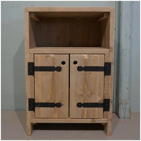 Dit steigerhouten koffiekastje heeft genoeg ruimte bovenop voor bijvoorbeeld uw koffiezetapparaat. Ook hieronder is er nog voldoende opbergruimte. In de opties kunt u zelf de afmetingen kiezen.