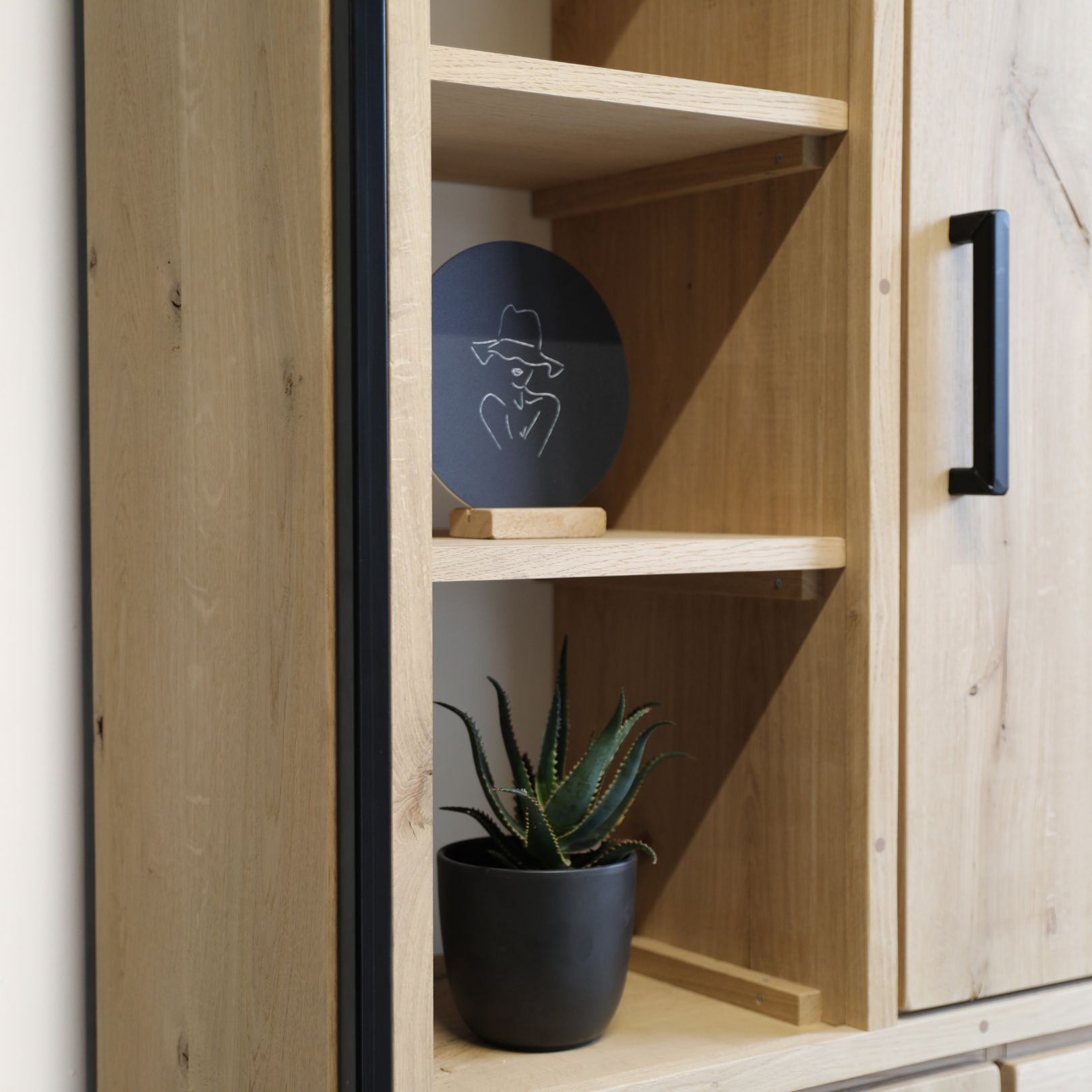 Bekijk ook onze blog over industriële kasten voor inspiratie of ontdek onze collectie maatwerk meubelen. Combineer deze kast met een eiken tafel of een bijzettafeltje voor een samenhangend geheel.
