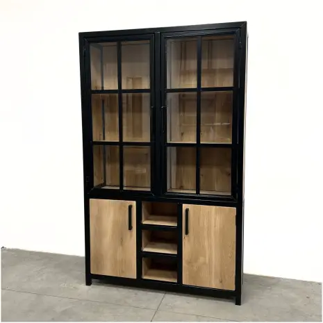 Vitrinekast industrieel Maya is een prachtige kast van hout, glas en staal.