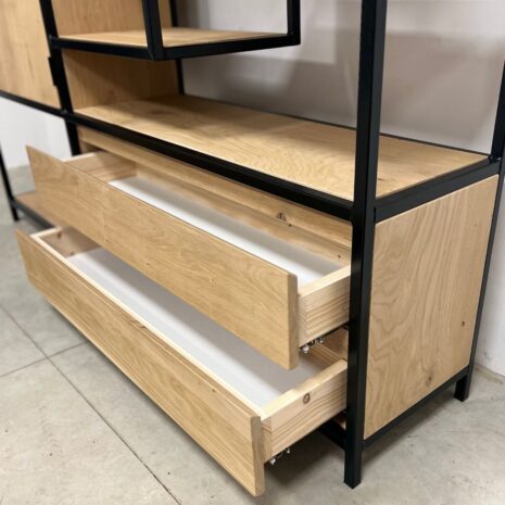 Industriรซle vakkenkast eikenhout en staal 12 op de foto.