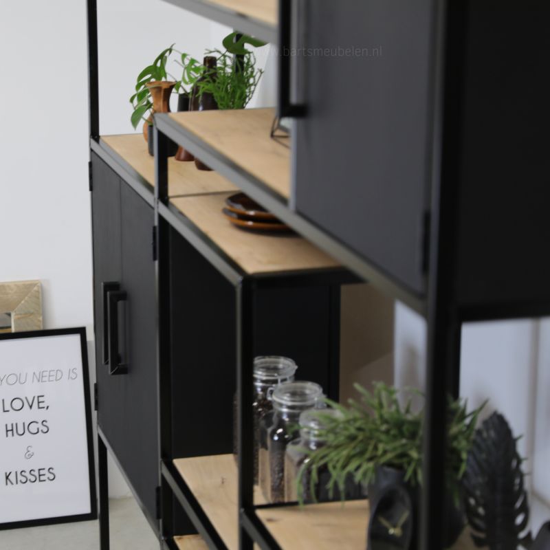 Vakkenkast eikenhout en staal 8, de industriรซle kast met open en dichte vakken