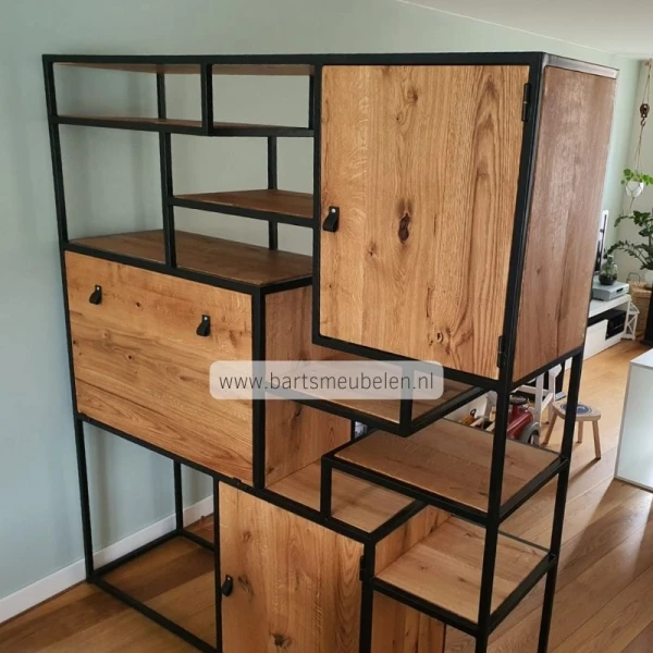 Eigen productie voor de wandkast industrieel door Barts meubelen.
