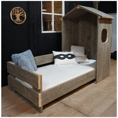 Steigerhouten bedhuisje 1, eenpersoons kinderbed huisje