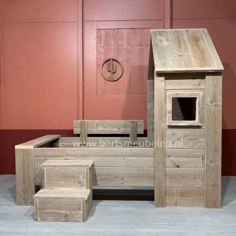Steigerhouten bedhuisje 2 is een stoer kinderbed in eenpersoonsmaat. Dit kinderbed huisje is zowel geschikt voor de stoere jongenskamer als de meisjeskamer.ย Hieronder stel je hem naar eigen wens samen.