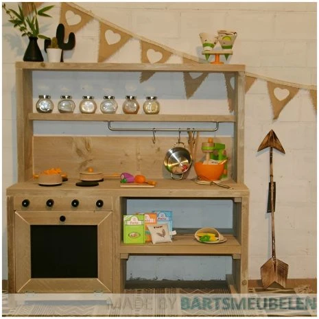 De steigerhouten kinderkeuken op de foto