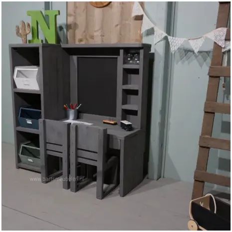 Doordat wij alles op bestelling maken zijn onze speelmeubels voor kinderen grotendeels te personaliseren. Zo kiest u zelf het soort steigerhout, de kleur (bijv. wit, grijs of zelfs roze). En ook voor het ovendeurtje is er een keuze tussen plexiglas of krijtbord. Daarnaast bepaalt u zelf de werkbladhoogte die past bij de leeftijd van uw kleintje(s) en kunt u een figuur kiezen.