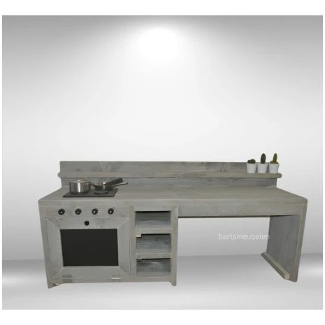 Doordat wij alles op bestelling maken zijn onze speelmeubels voor kinderen grotendeels te personaliseren. Zo kiest u zelf het soort steigerhout, de kleur (bijv. wit, grijs of zelfs roze). En ook voor het ovendeurtje is er een keuze tussen plexiglas of krijtbord. Daarnaast bepaalt u zelf de werkbladhoogte die past bij de leeftijd van uw kleintje(s) en kunt u een figuur kiezen.