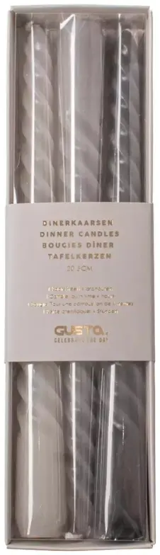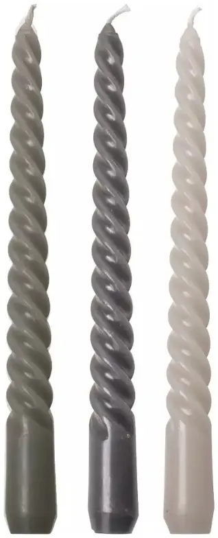Er zitten 3 kaarsen in een set verpakt en elke kaars heeft 4 branduren. De grijze kaarsen hebben een afmeting van ø 2,15 x 20,5 cm en zijn gemaakt van wax. Ook verkrijgbaar in andere kleuren en afmetingen.