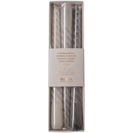 GUSTA Dinerkaars swirl 20cm grijs set 3 stuks. Deze hippe gedraaide kaarsen zijn eigenlijk te mooi om aan te steken, ze zijn een prachtige decoratie in huis. Ook top om ze te gebruiken bij een diner, zo maak je je tafel helemaal in stijl af.
