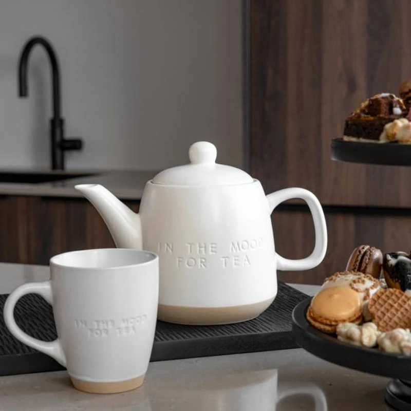 Geniet van ieder theemoment met deze theepot. Deze theepot is een mooie toevoeging aan ieder servies. De theepot heeft een inhoud van 1,3 liter en is voorzien van de tekst “IN THE MOOD FOR TEA”. Combineer dit product met andere items uit de MOOD FOR FOOD lijn voor een stijlvol geheel!