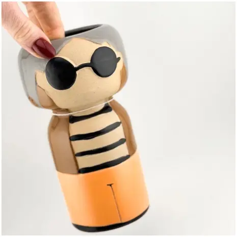 Breng een vrolijke vibe naar je interieur met deze aardewerk Kokeshi Doll Vaas.