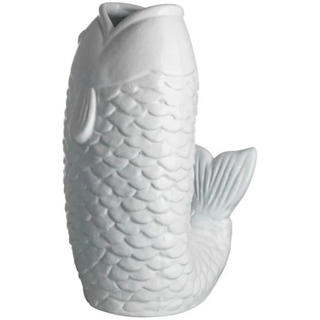 Deze originele vis vaas snakt naar water en kleur! Vul hem dus snel met water en een mooie bos bloemen en je hebt een echte eyecatcher in huis. De vaas heeft een offwhite kleur met matte afwerking, dit zorgt voor een mooi contrast met gekleurde bloemen en is makkelijk combineerbaar met andere accessoires.