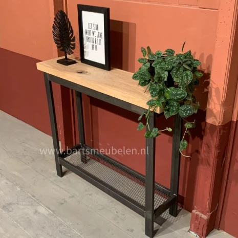 Deze industriele sidetable is een prachtige combinatie van eikenhout en staal.