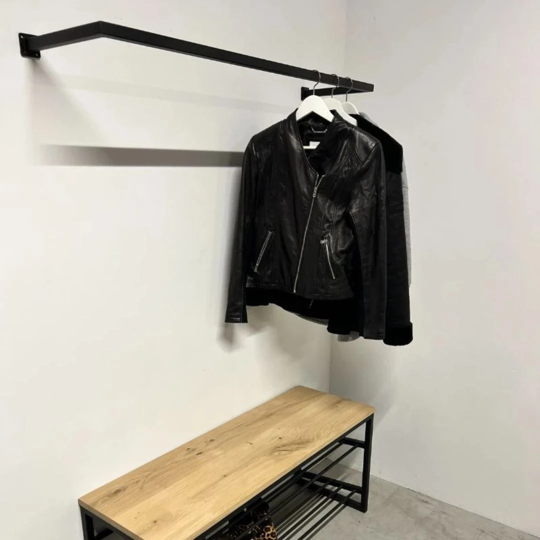 Deze garderobe stang is gemaakt van vierkante koker 25x25mm en is voorzien van een matzwarte structuur poedercoating. Deze stang is gemakkelijk op te hangen en biedt veel ruimte voor jassen. Maar kan natuurlijk ook heel goed gebruikt worden voor het creëren van een kledingkamer.