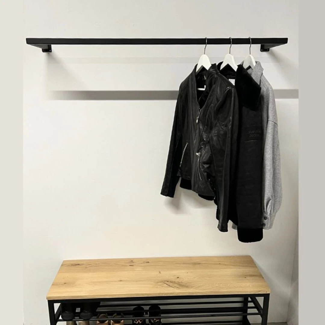 Met deze zwarte garderobestang van vierkant staal geef je jouw hal een moderne uitstraling en is een leuk alternatief voor een standaard kapstok. Hij is verkrijgbaar in 4 afmetingen zodat er altijd een garderobestang is die aansluit bij de ruimte in jouw hal.