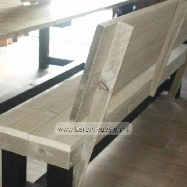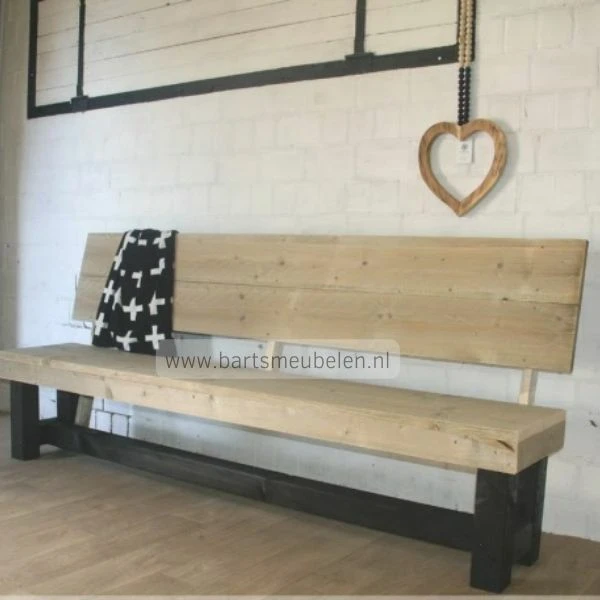 Eettafelbank met rug Sjors van steigerhout is stoer en praktisch. Hieronder stel je deze houten bank met rugleuning naar eigen wens samen.