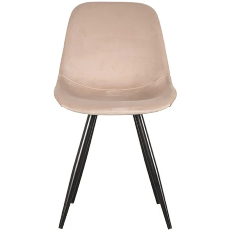 Eetkamerstoel Capri heeft een zeer luxe en comfortabele kuip voorzien van elegante rondingen en is uitgevoerd in een mooie zachte zandkleurige fluweel. Tevens is Capri in het bezit van licht uitlopende poten, uitgevoerd in zwart metaal waardoor de stoel stevig op de grond staat en ook nog eens een leuke speelse touch krijgt.