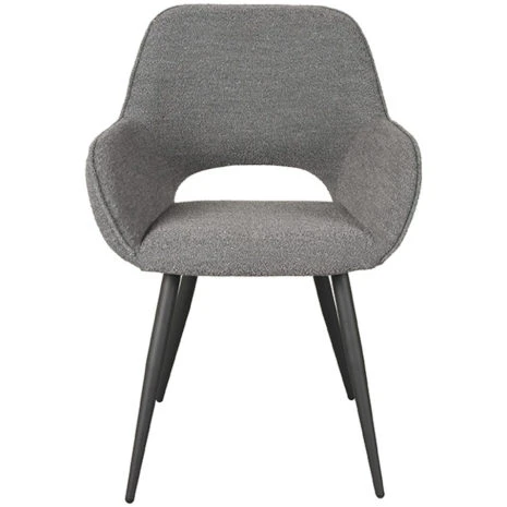 Eetkamerstoel Fer van LABEL51 is een prachtige armstoel uitgevoerd in grijs bouclรฉ waar comfort en verfijning samen komen. De mooie zitting met een speelse uitsparing in de rugleuning in combinatie met de fraaie zwarte poten maken Fer tot een topper in zijn segment.