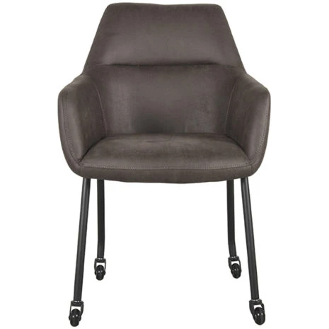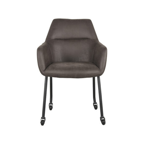 Eetkamerstoel Lenny, gestoffeerd met micro suรจde, heeft een forse zitting met armleuningen, wat bijdraagt aan het hoge comfort van de stoel. Lenny is extra handig omdat deze stoel voorzien is van wieltjes en een handvat aan de achterkant van de rugleuning. De combinatie van de wielen en het greepje zorgen ervoor dat Lenny een mobiele eetstoel is, die heel gemakkelijk is aan te schuiven aan de eettafel. Kortom, Lenny is de perfecte eetkamerstoel voor wie op zoek is naar een handige รฉn comfortabele eetkamerstoel, met een moderne uitstraling.