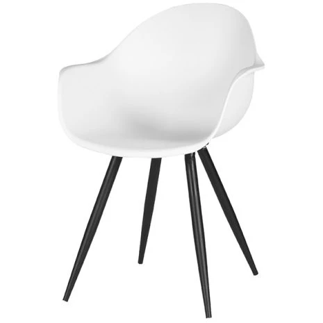 Eetkamerstoel Luca, uitgevoerd in wit polypropyleen heeft een zeer luxe en comfortabele kuip voorzien van elegante rondingen en armleuningen. Het materiaal is duurzaam en zeer gebruiksvriendelijk. Tevens is Luca in het bezit van licht uitlopende poten uitgevoerd in zwart metaal waardoor de stoel stevig op de grond staat en ook nog eens een leuke speelse touch krijgt.