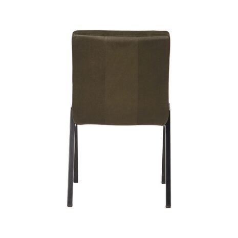 Matz heeft een vierkant gevormde zitting en rugleuning met afgeronde hoeken. De zitting en rugleuning zijn uitgevoerd in army kleurige microvezel en voorzien van een zeer fraai verticaal gestikt patroon. Het V-vormige, robuuste metalen frame met robuuste tussenbalk in de kleur zwart geeft Matz een speelse uitstraling en zorgt er met zijn uitlopende poten voor dat hij lekker stevig op de grond staat.