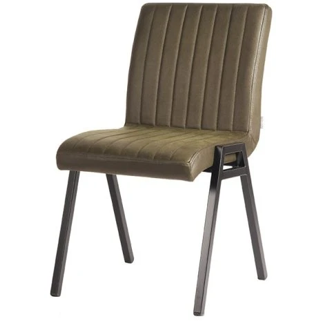 Matz heeft een vierkant gevormde zitting en rugleuning met afgeronde hoeken. De zitting en rugleuning zijn uitgevoerd in army kleurige microvezel en voorzien van een zeer fraai verticaal gestikt patroon. Het V-vormige, robuuste metalen frame met robuuste tussenbalk in de kleur zwart geeft Matz een speelse uitstraling en zorgt er met zijn uitlopende poten voor dat hij lekker stevig op de grond staat.