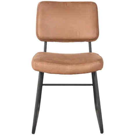 Eetkamerstoel Noah is uitgevoerd in cognac suรจde, een bruinkleurige stof met een hele subtiele structuur. Noah bestaat uit een rechthoekige rugleuning voorzien van afgeronde hoeken, aparte rugleuning en zitting, die verbonden zijn door een prachtig doorlopend zwart frame, voorzien van een handgreep op de achterkant van de rugleuning. Dit maakt Noah extra functioneel waardoor het aanschuiven van deze eetkamerstoel nog makkelijker wordt. De sledepoot zorgt voor een luchtig en elegant uiterlijk.