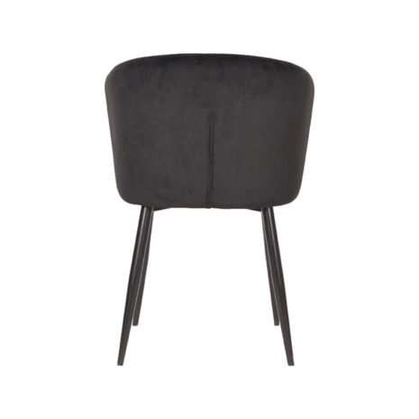 Wave, uitgevoerd in zwart fluweel heeft een vierkant gevormde zitting met elegante rondingen waardoor er een prettig zitoppervlak ontstaat. De strakke maar zeer elegante rugleuning heeft een ergonomisch design en een trendy uitstraling door de gave golvende vorm. De zwarte naar buiten staande poten zorgen ervoor dat de stoel lekker stabiel op de grond staat.