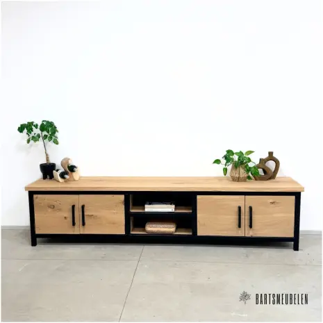 Tv meubel industrieel Eden van eikenhout met een stalen frame. Dit grote tv meubel is zowel groot als prachtig.