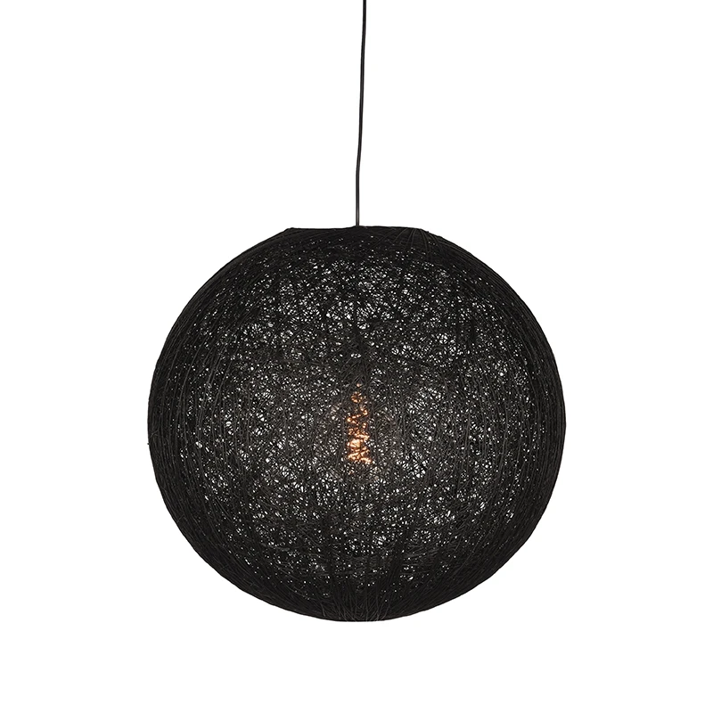 Hanglamp Twist bestaat uit een prachtige bolvorm van zwart vlasdraad en heeft een diameter van 45 cm. Het vlasdraad zorgt voor een speels lijnenspel en het open-dicht contrast waardoor er een sensationeel lichteffect ontstaat op het moment dat de lamp gaat branden.