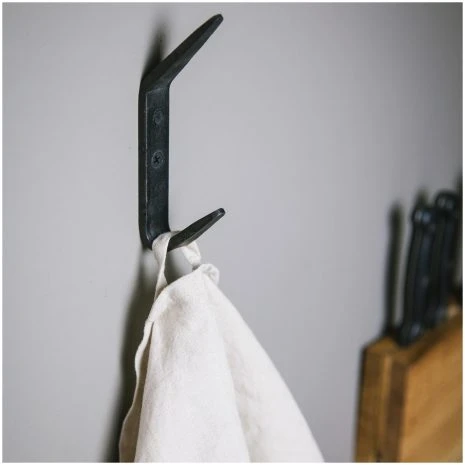 Deze kapstokhaak dubbel van Brรปt is een mooie aanvulling van ons assortiment kapstokhaken. Stoer en industrieel smeedijzer met een prachtige, ruwe uitstraling. Toepasbaar in zoveel combinaties. Wat dacht je van de combinatie met een stoer eikenhouten plankje voor een kapstok of natuurlijk los op de muur! Ook prachtig in combinatie met bijvoorbeeld een garderobekast.