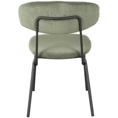 Eetkamerstoel Zack Forest Ribcord voorraadmodel van LABEL51. Comfortabel, retro ontwerp met zacht ribcord en metalen frame. Direct leverbaar als voorraadmodel.